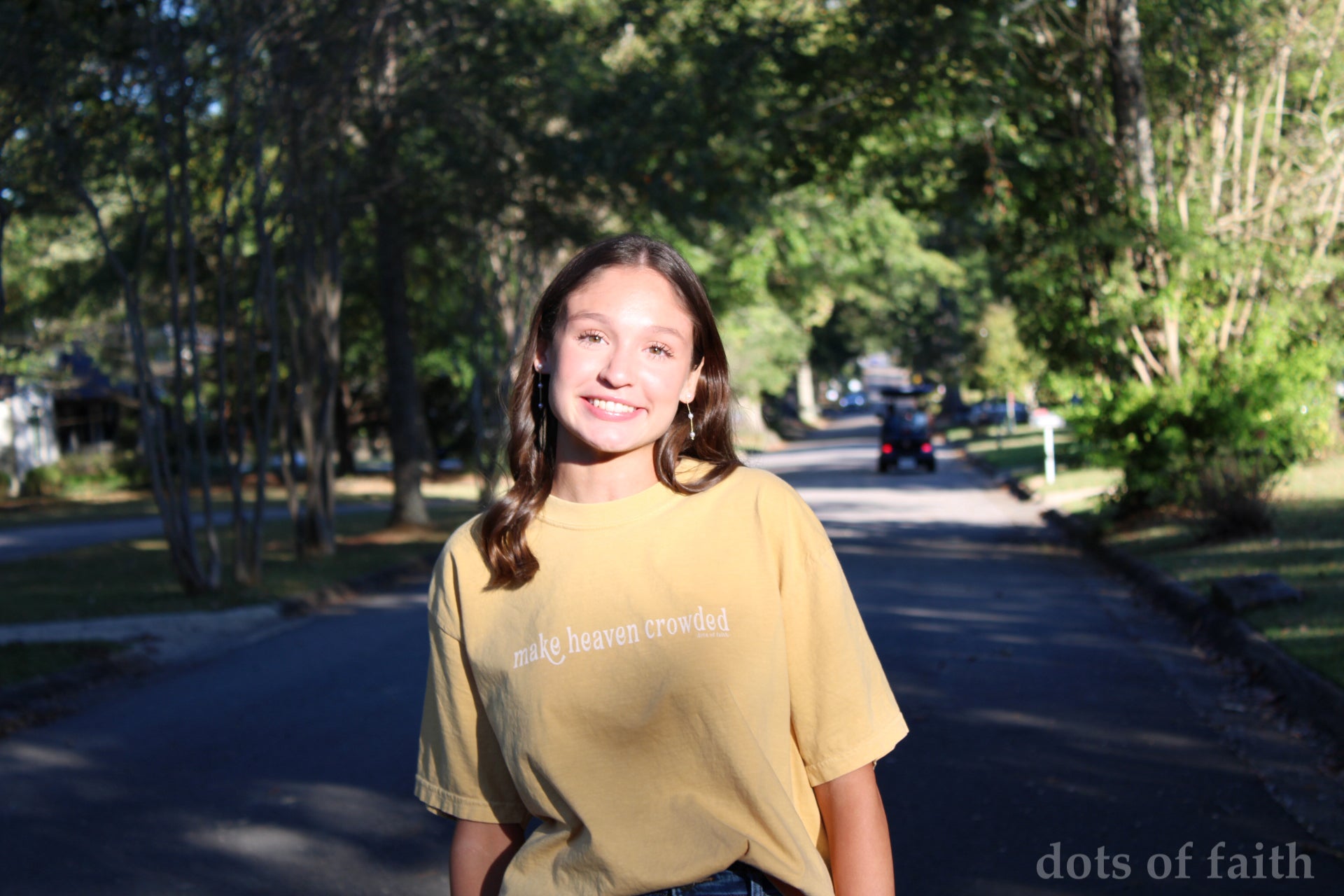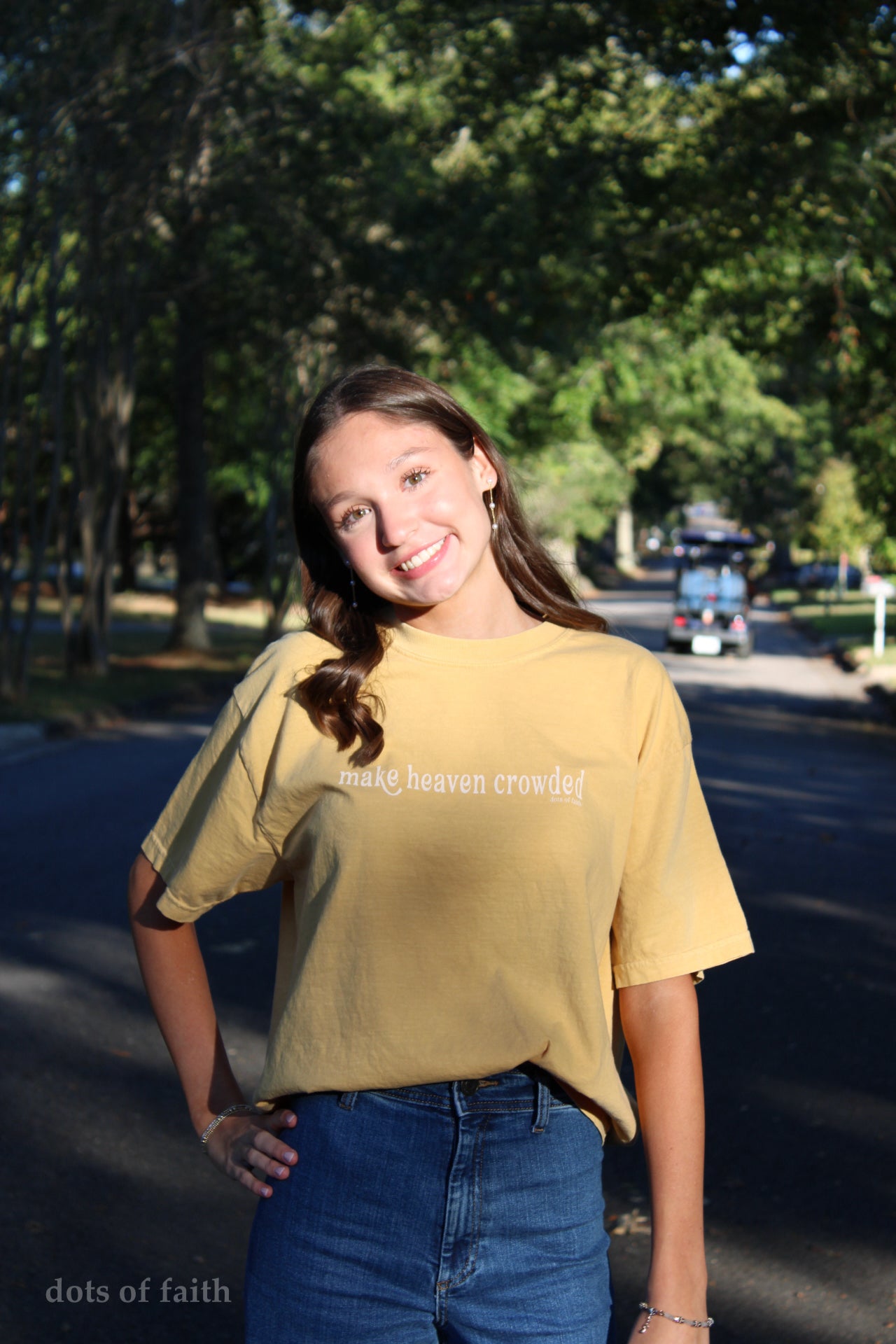 Experience effortless style and eternal purpose all in one. This Comfort Colors tee in a rich mustard shade features the bold and inspiring message “Make Heaven Crowded”—a daily reminder to live on mission and share your faith everywhere you go.