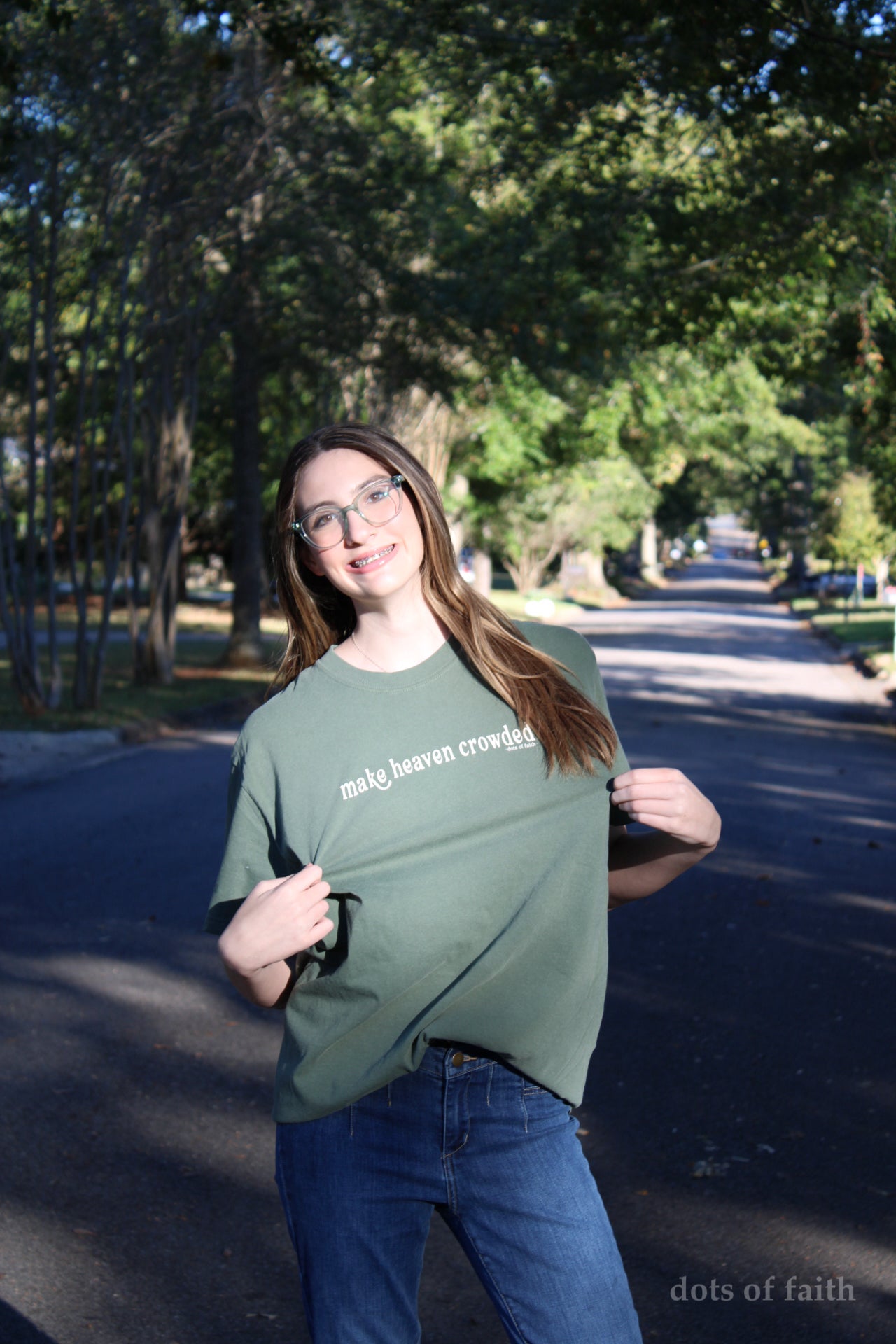 Experience effortless style and eternal purpose all in one. This Comfort Colors tee in a rich mustard shade features the bold and inspiring message “Make Heaven Crowded”—a daily reminder to live on mission and share your faith everywhere you go.